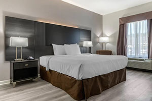 Relax and unwind after a long day of travel on premium bedding while watching your favorite shows on our flat-screen TV in our comfortable guest rooms.