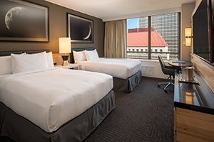 Stay in the heart of Portland at Hilton Portland Downtown just steps from trendy coffee shops, food carts, and nightlife and 5 miles from Lewis & Clark campus. Enjoy modern rooms, free Wi-Fi in the lobby, and easy access to public transit for exploring the city and the city’s best hangouts. Hang out in our vibrant common areas, connect with friends in HopCity Tavern & Bar for craft beers and local bites perfect for sharing and socializing. It’s the ultimate spot!