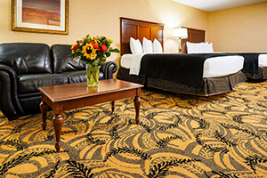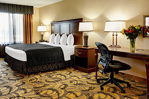 Located in Tigard, Oregon, just a short walk from the shops and restaurants of Bridgeport Village. The Grand Hotel at Bridgeport offers 124 spacious guest rooms and suites designed for comfort and relaxation. Enjoy free hot breakfast, covered parking, and high-speed Wi-Fi; all included with your stay. Each room features leather seating, a large bathroom, and a work desk with an ergonomic chair. Select suites also include jetted tubs for the ultimate in relaxation. Accessibility kits are available upon request.